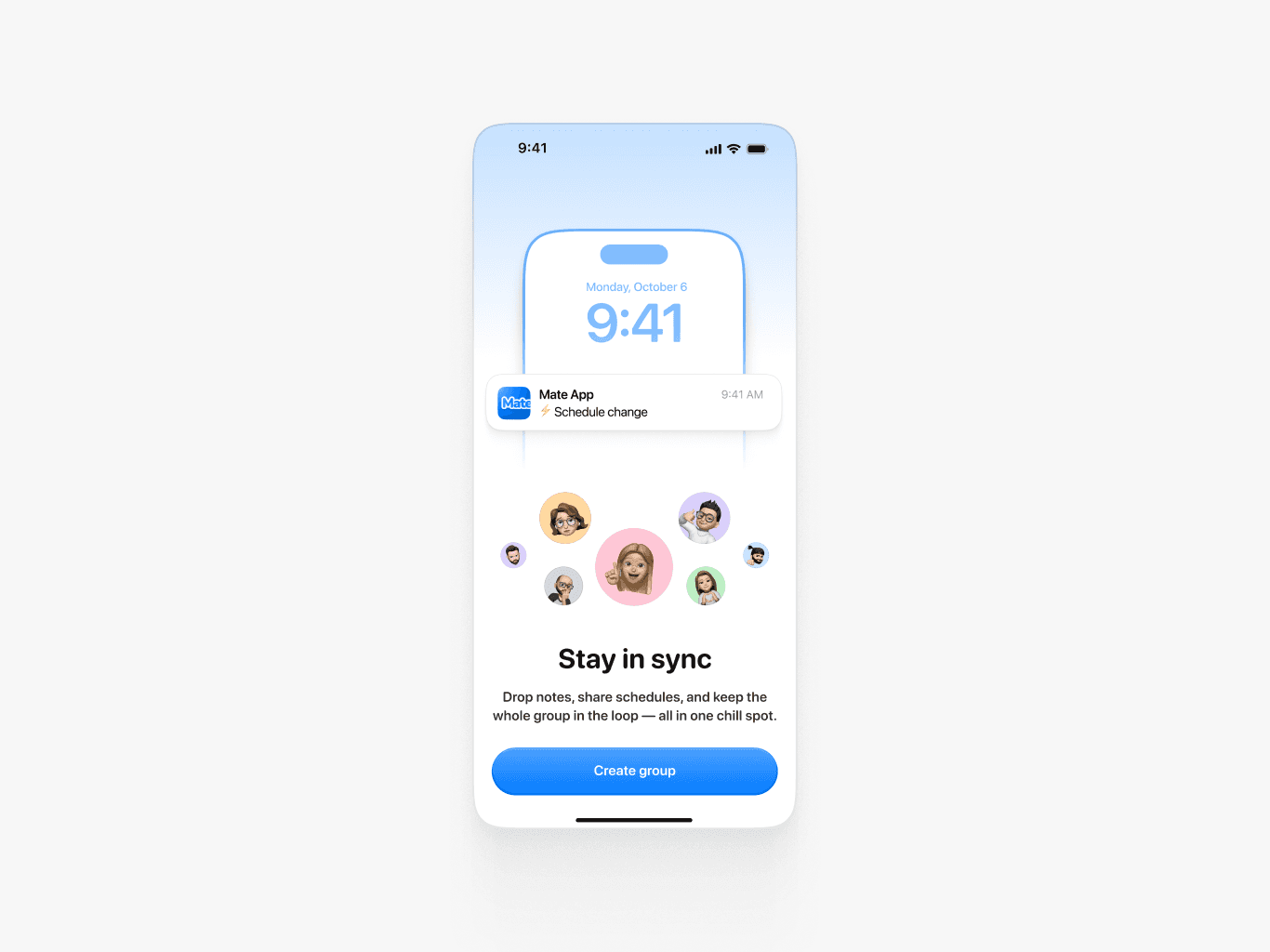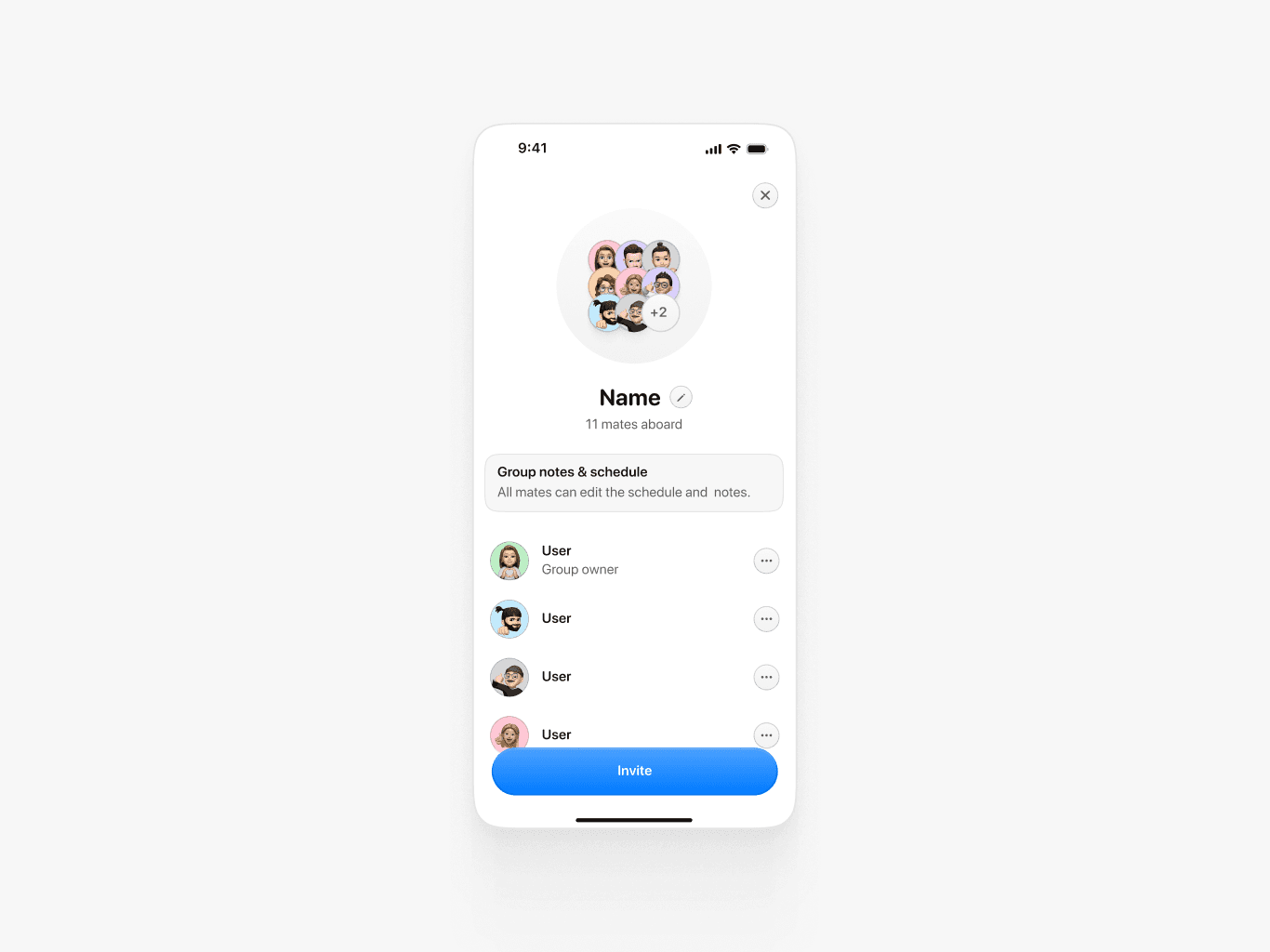 MVP собран за 3.5 месяца с одним part-time разработчиком. В приложение вошли: группы, расписание, заметки и уведомления об изменениях. Осознанно отложили: виджеты, геймификацию (scoreboard с вкладом каждого), платные функции. Всё что вошло в MVP — продуктовая основа, без которой нельзя валидировать идею. Что бы сделал иначе: провёл бы больше интервью на этапе прототипа и протестировал онбординг до разработки. Часть UX-решений пришлось дорабатывать уже после первых тестов.